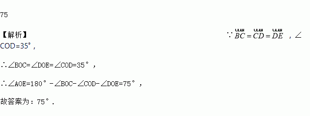 如图,AB是⊙O的直径,弧BC=弧CD=弧DE,∠COD=35°,则∠AOE=________ °.