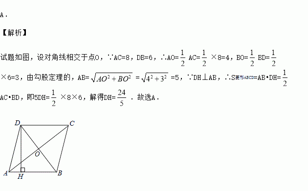 (4分)如图,四边形ABCD是菱形,AC=8,DB=6,DH⊥AB于H,则DH=( )
