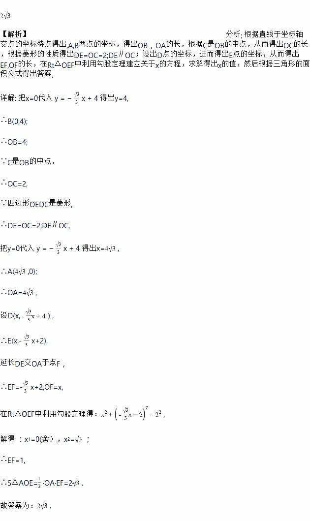 如图,直线与x轴、y轴分别交于A,B两点,C是OB的中点,D是AB上一点,四边形OEDC是菱形,则△OAE的面积为________.