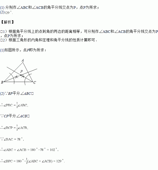 (2)若∠BAC=78°,试求∠BPC的度数.