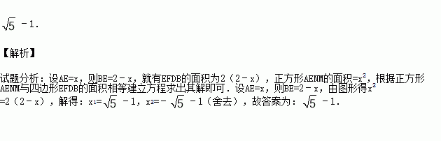 已知线段AB的长为2,以AB为边在AB的下方作正方形ACDB.取AB边上一点E,以AE为边在AB的上方作正方形AENM.过E作EF⊥CD,垂足为F点,如图.若正方形AENM与四边形EFDB的面积相等,则AE的长为 .