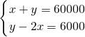 分析:首先假设出现场观看篮球比赛的观众大约有x人,现场观看足球比赛的观众大约有y人,根据两场比赛大约共有60000人到达现场观看比赛,其中观看足球比赛的人数比观看篮球比赛的人数的2倍还多6000人,分别得出等量关系组成方程组求出即可.