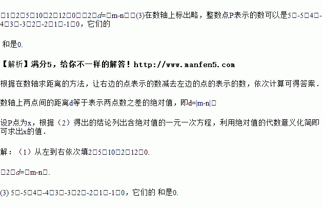 (3)在数轴上标出所有符合条件的整数点P,使它到5和-5的距离之和为10,并求出所有这些整数的和.