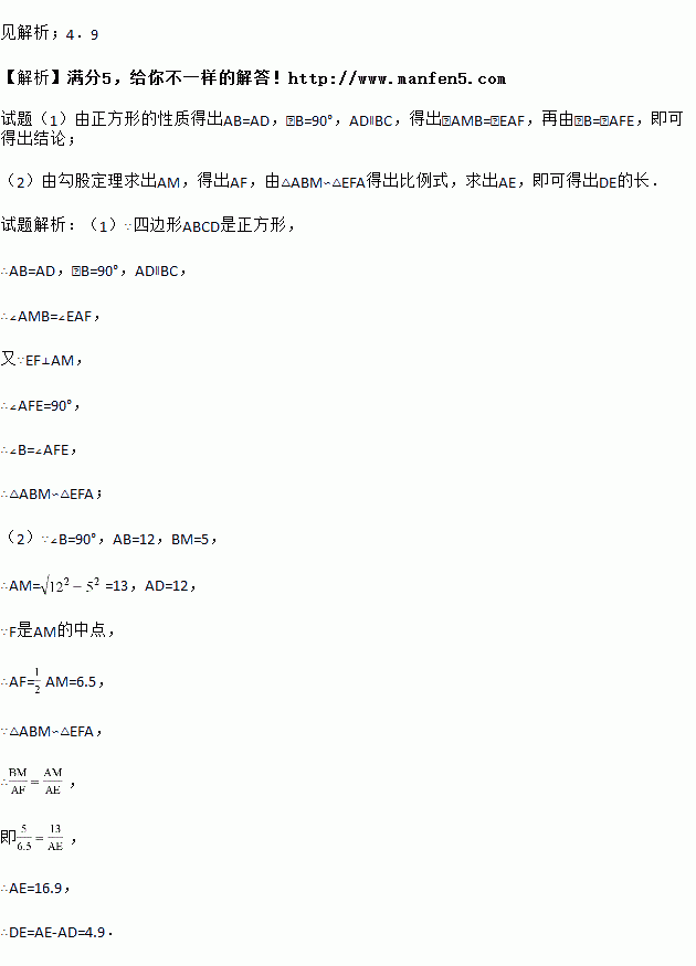 如图,正方形ABCD中,M为BC上一点,F是AM的中点,EF⊥AM,垂足为F,交AD的延长线于点E,交DC于点N.