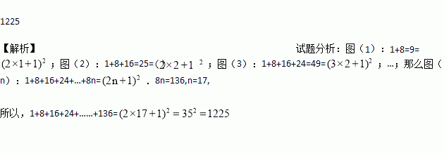 观察下列图形及图形所对应的算式,根据你发现的规律计算1+8+16+24+…+136=________