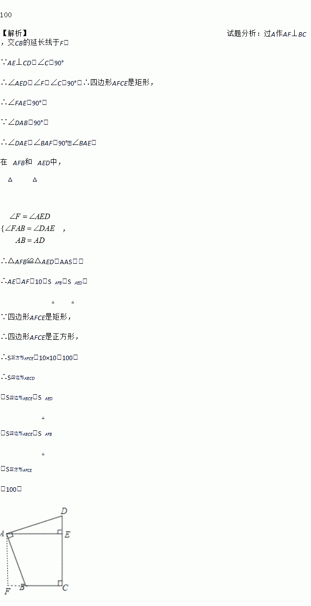 如图,在四边形ABCD中,∠BAD=∠C=90°,AB=AD,AE⊥CD,垂足为E,若线段AE=10,则S四边形ABCD=_____.