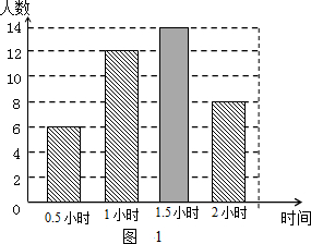 为了贯彻“减负增效”精神,掌握九年级600名学生每天的自主学习情况,某校学生会随机抽查了九年级的部分学生,并调查他们每天自主学习的时间.根据调查结果,制作了两幅不完整的统计图(图1,图2),请根据统计图中的信息回答下列问题: