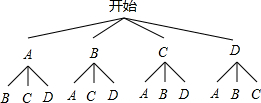 (4)画树状图得:
