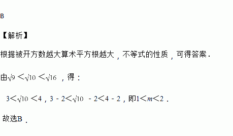 A. 0<m<1 B. 1<m<2 C. 2<m<3 D. 3<m<4