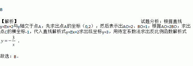 (k≠0)的图象交于点C,过点C作CB⊥x轴于点B,AO=2BO,则反比例函数的解析式为( )