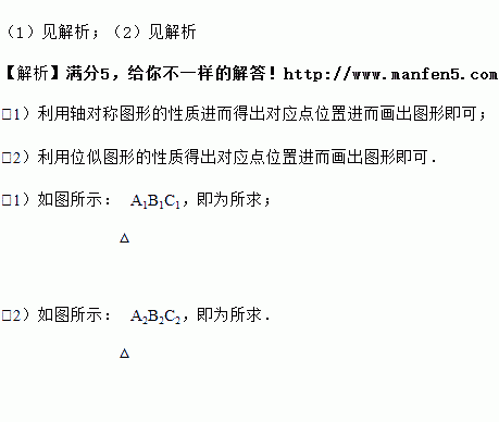 (2)以点M(1,2)为位似中心,在网格中画出△A1B1C1的位似图形△A2B2C2,,使△A2B2C2,与△A1B1C1的相似比为2:1
