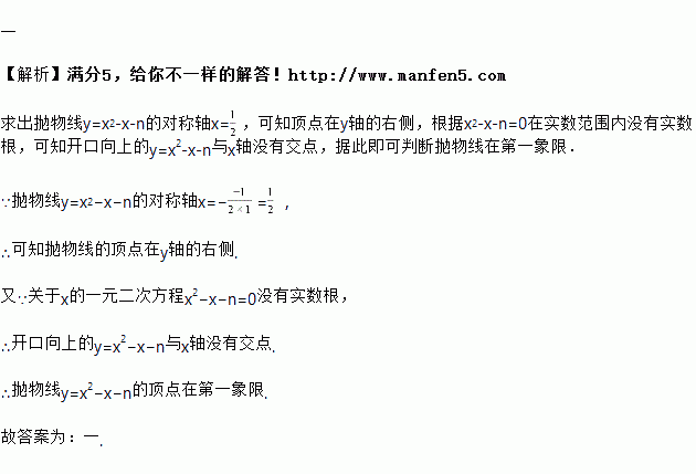 关于的方程没有实数根,则抛物线的顶点在第________象限.