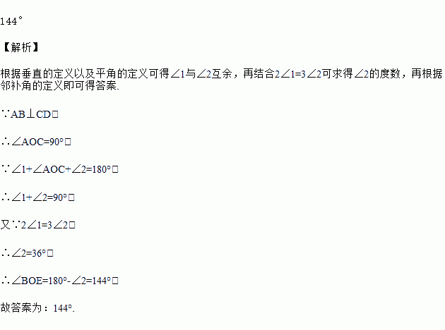 如图,已知直线AB⊥CD,垂足为O,直线EF经过点O,2∠1=3∠2,则∠EOB的度数为_____.