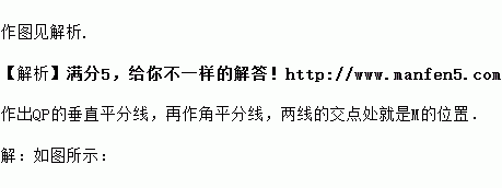 如图,l1、l2交于A点,P、Q的位置如图所示,试确定M点,使它到l1、l2的距离相等,且到P、Q两点的距离也相等.(用直尺和圆规)