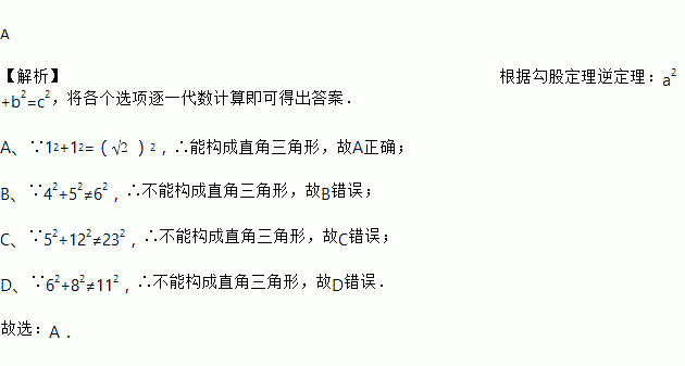 A. 1,1, B. 4,5,6 C. 5,12,23 D. 6,8,11