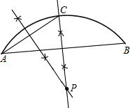 分析:(1)连接AB,任意作一弦AC,然后分别作弦AB、AC的垂直平分线,相交于一点,则这点即为所求作的弧AB的圆心P;