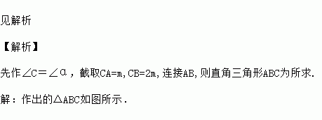 如图,已知直角α,线段m,利用尺规作直角三角形ABC,使∠C=90°,AC=m,BC=2m.不写作法,但要保留作图痕迹.