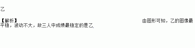 甲、乙、丙三人进行飞镖比赛,已知他们每人五次投得的成绩如图,那么三人中成绩最稳定的是_______.