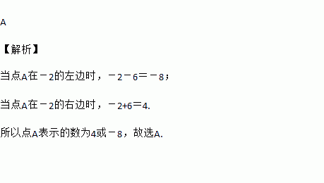 数轴上的点A到-2的距离是6,则点A表示的数为( )