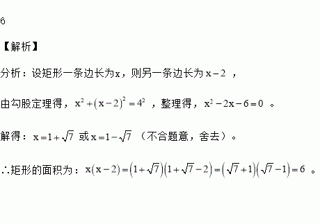 矩形的两邻边长的差为2,对角线长为4,则矩形的面积为 .
