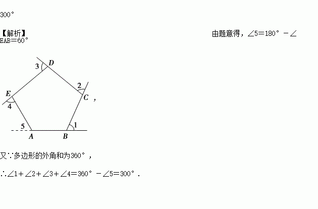 如图,∠1、∠2、∠3、∠4是五边形ABCDE的4个外角.若∠A=120°,则∠1+∠2+∠3+∠4= .