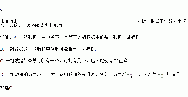 A. 一组数据的中位数一定等于该组数据中的某个数据