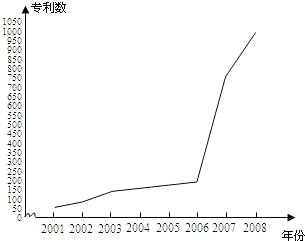 (2)请用折线图描述2001年~2008年各年度的专利数;