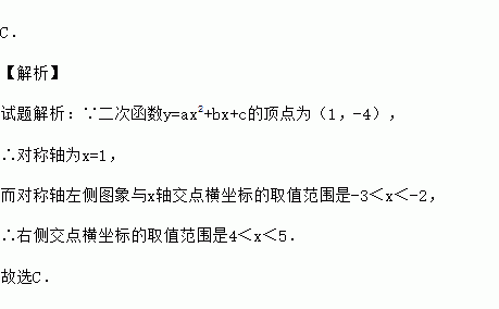 如图,以(1,-4)为顶点的二次函数y=ax2+bx+c的图象与x轴负半轴交于A点,则一元二次方程ax2+bx+c=0的正数解的范围是( )