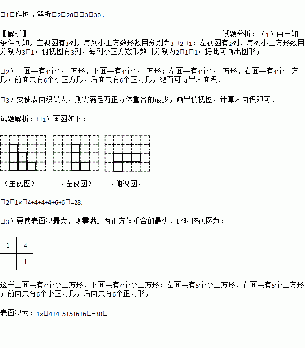 (3)若上述小立方块搭成的几何体的俯视图不变,各位置的小立方块个数可以改变(总数目不变),则搭成的几何体的表面积最大为 个平方单位(包括底面积) .