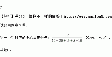 九年级(2)班同学根据兴趣分成五个小组,各小组人数分布如图所示,则在扇形图中第一小组对应的圆心角度数是( )