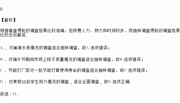 D. 对某班50名学生视力情况的调查