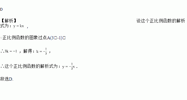 如果一个正比例函数的图象经过点A(3,-1),那么这个正比例函数的解析式为( )