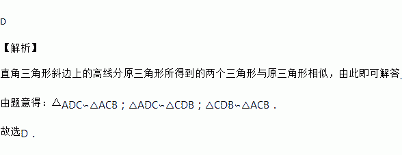 如图,是斜边上的高,则图中相似三角形的对数有( )