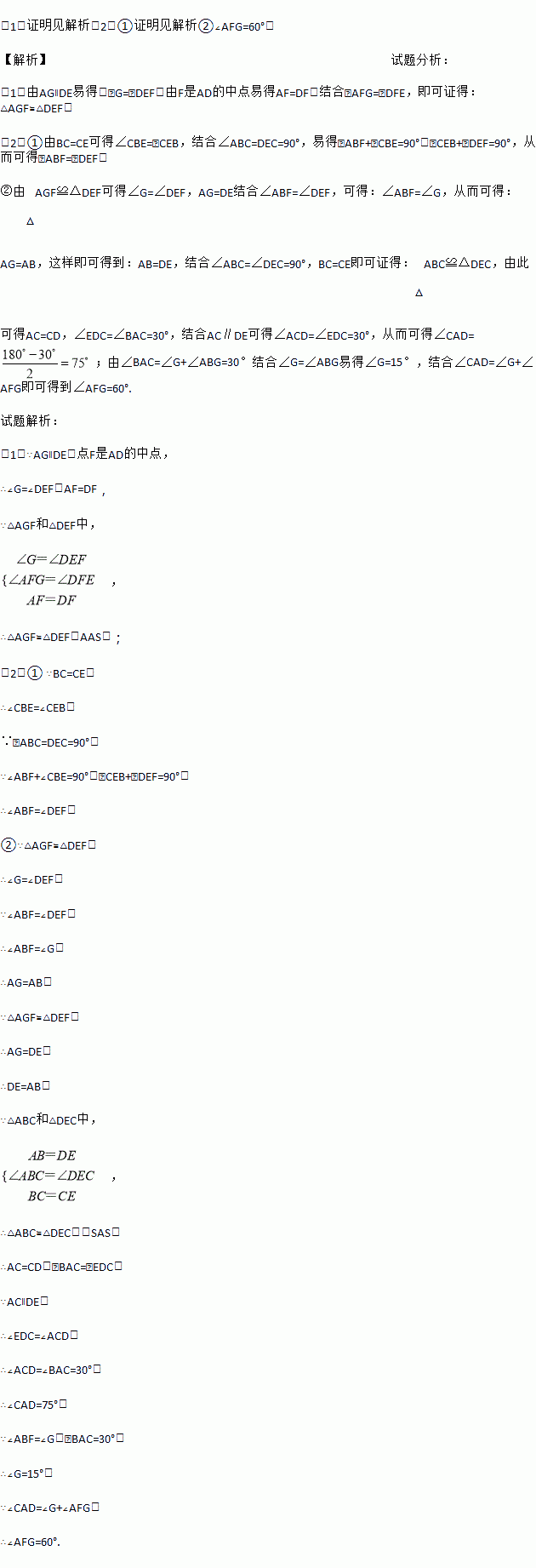 (1)求证:△AFG≌△DFE;
