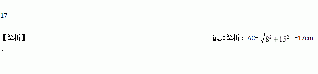在△ABC中,AB=8cm,BC=15cm,要使∠B=90°,则AC的长必为______cm.