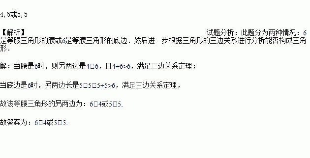 等腰三角形的周长为16,其一边长为6,则另两边为______.