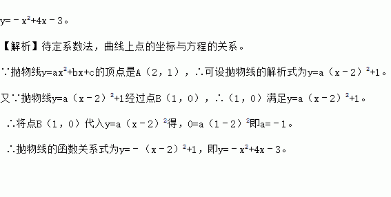 若抛物线y=ax2+bx+c的顶点是A(2,1),且经过点B(1,0),则抛物线的函数关系式为 ▲ .