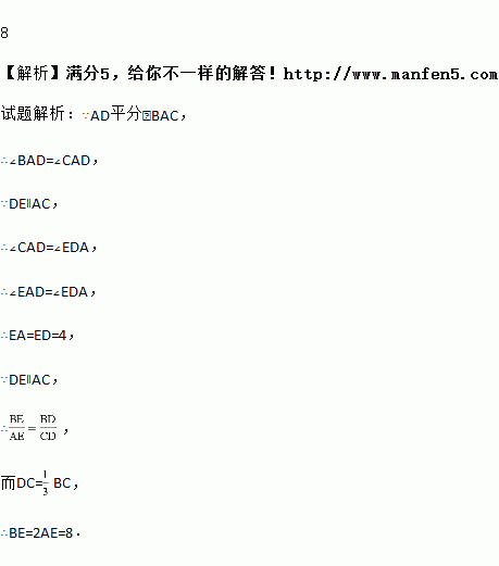 BC,DE∥AC,与AB边的交点为E,若DE=4,则BE的长为_____.