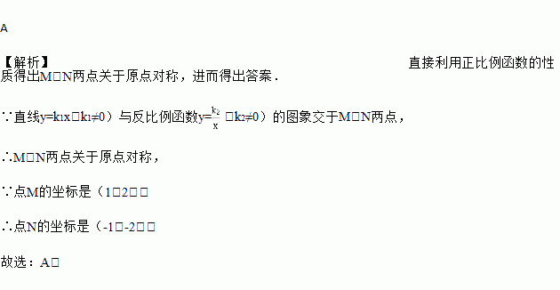 (k2≠0)的图象交于M,N两点.若点M的坐标是(1,2),则点N的坐标是( )