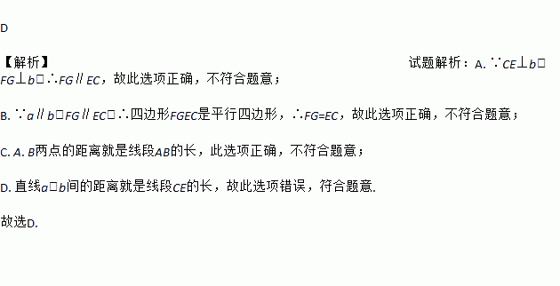 如图,a∥b,AB∥CD,CE⊥b,FG⊥b,E、G为垂足,则下列说法中错误的是( )