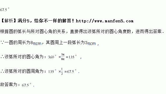 已知一圆的周长为,其圆周上一段弧长为,则该弧所对的圆周角为________.