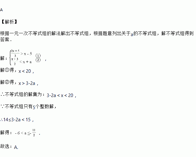 若关于x的不等式组只有5个整数解,则a的取值范围( )