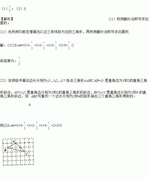 的三角形面积(请利用图②的正方形网格画出相应的△ABC,并求出它的面积)。