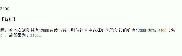 “万人马拉松”活动组委会计划制作运动衫分发给参与者,为此,调查了部分参与者,以决定制作橙色、黄色、白色、红色四种颜色运动衫的数量.根据得到的调查数据,绘制成如图所示的扇形统计图.若本次活动共有12000名参与者,则估计其中选择红色运动衫的约有________名.