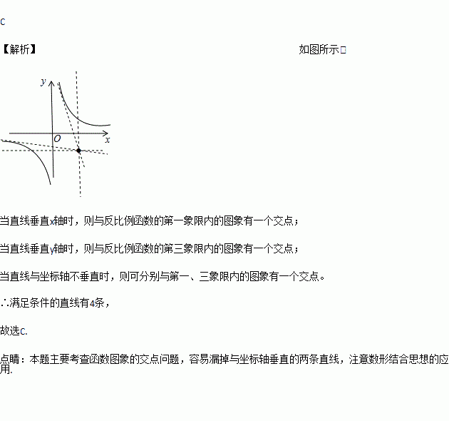 经过点(2,-1)作一条直线和反比例函数相交,当他们有且只有一个公共点时,这样的直线存在( )