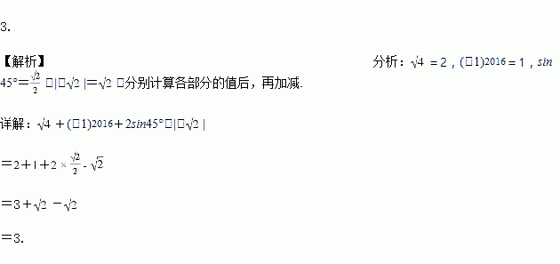 计算:+(﹣1)2016+2sin45°﹣|﹣|.