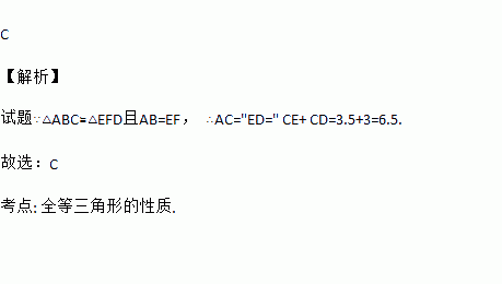 如图,△ABC≌△EFD,且AB=EF,CE=3.5,CD=3,则AC等于( )