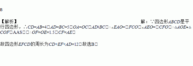 如图,在?ABCD中,AB=4,BC=5,对角线相交于点O,过点O的直线分别交AD,BC于点E,F,且OE=1.5,则四边形EFCD的周长为( )