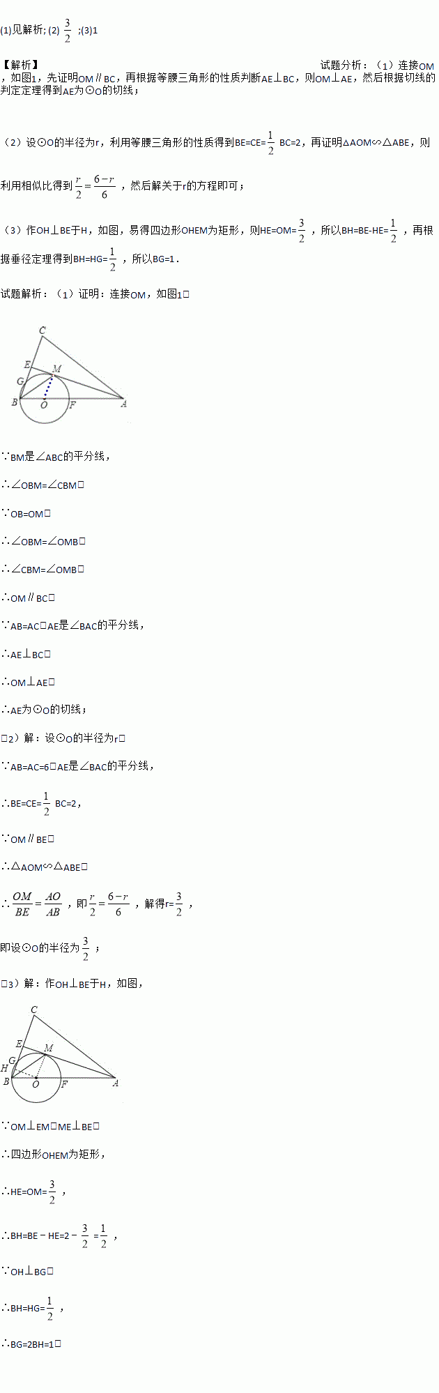 如图,在△ABC中,AB=AC,AE是∠BAC的平分线,∠ABC的平分线BM交AE于点M,点O在AB上,以点O为圆心,OB的长为半径的圆经过点M,交BC于点G,交AB于点F.