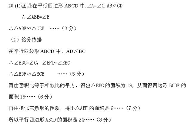 (2)若△DEF的面积为2,求平行四边形ABCD的面积.